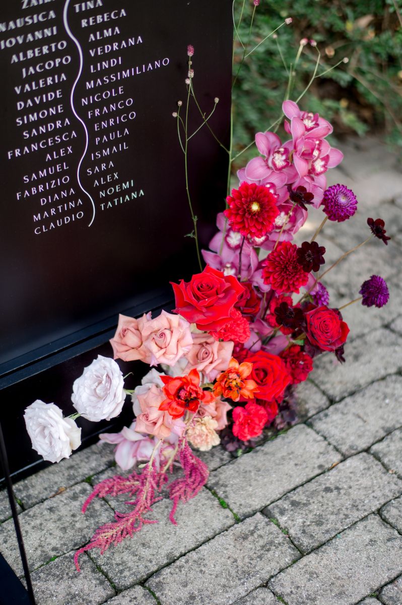 Giulia mi ripeteva spesso una parola: strong. E io, che adoro quando mi chiedono di osare, ho capito subito che c’era terreno fertile per un progetto fuori dagli schemi. Colori decisi, carattere forte, una visione chiara: il loro matrimonio doveva essere un’esperienza. E così è stato.
