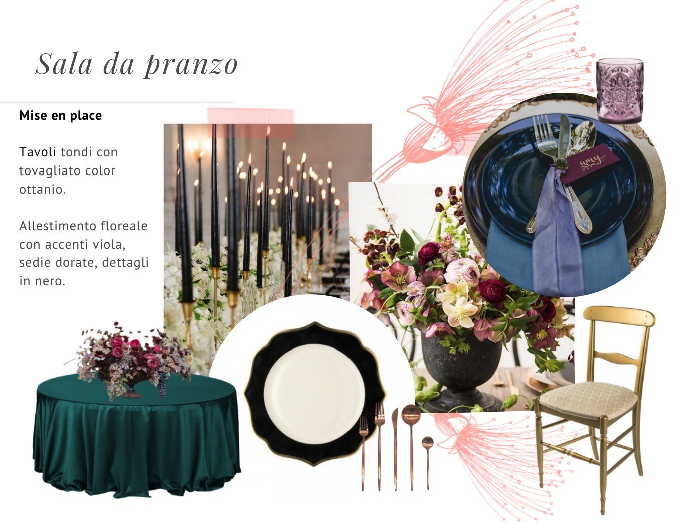 Via il bordeaux dalla palette, abbiamo osato con il viola e il nero. Quando si sceglie una palette si possono unire colori importanti, bisogna solo fare attenzione a come li si dosa.